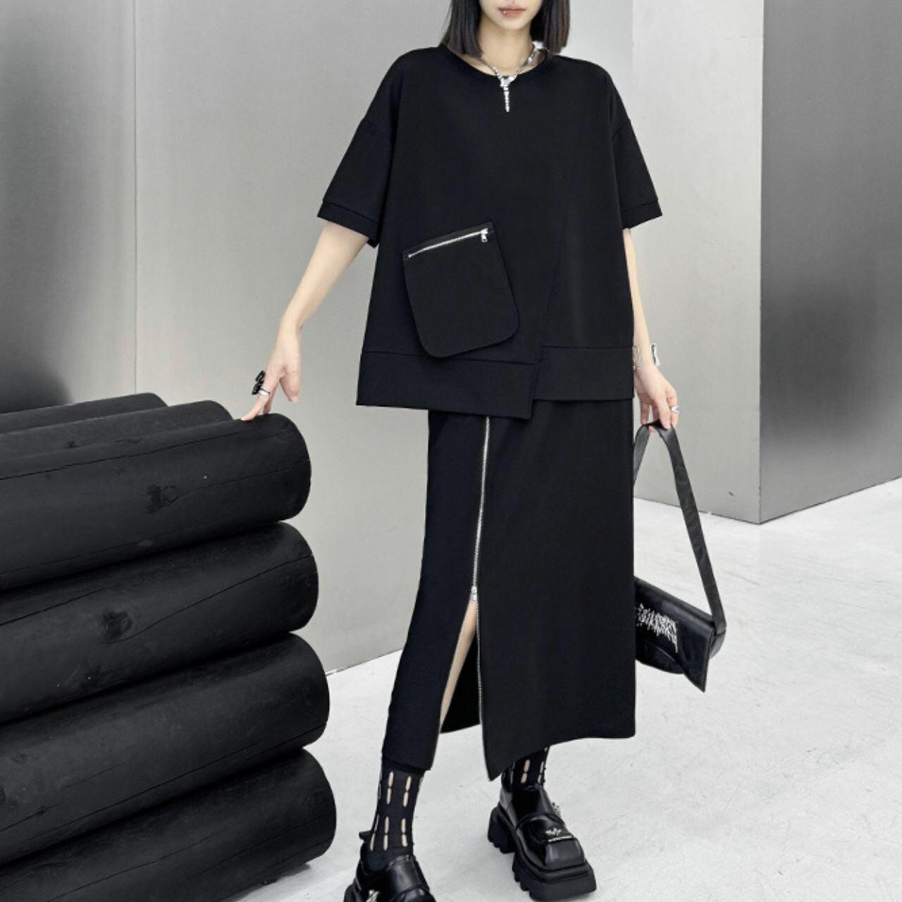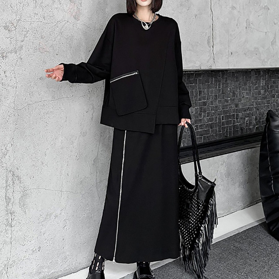 0153.ビッグポケットロングスリーブトップス+ジッパースリットスカート