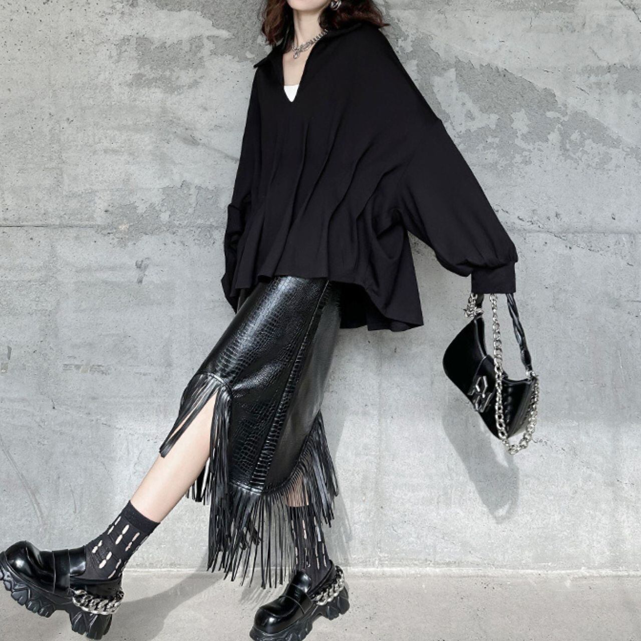 080.フェイクレザータッセルスカート