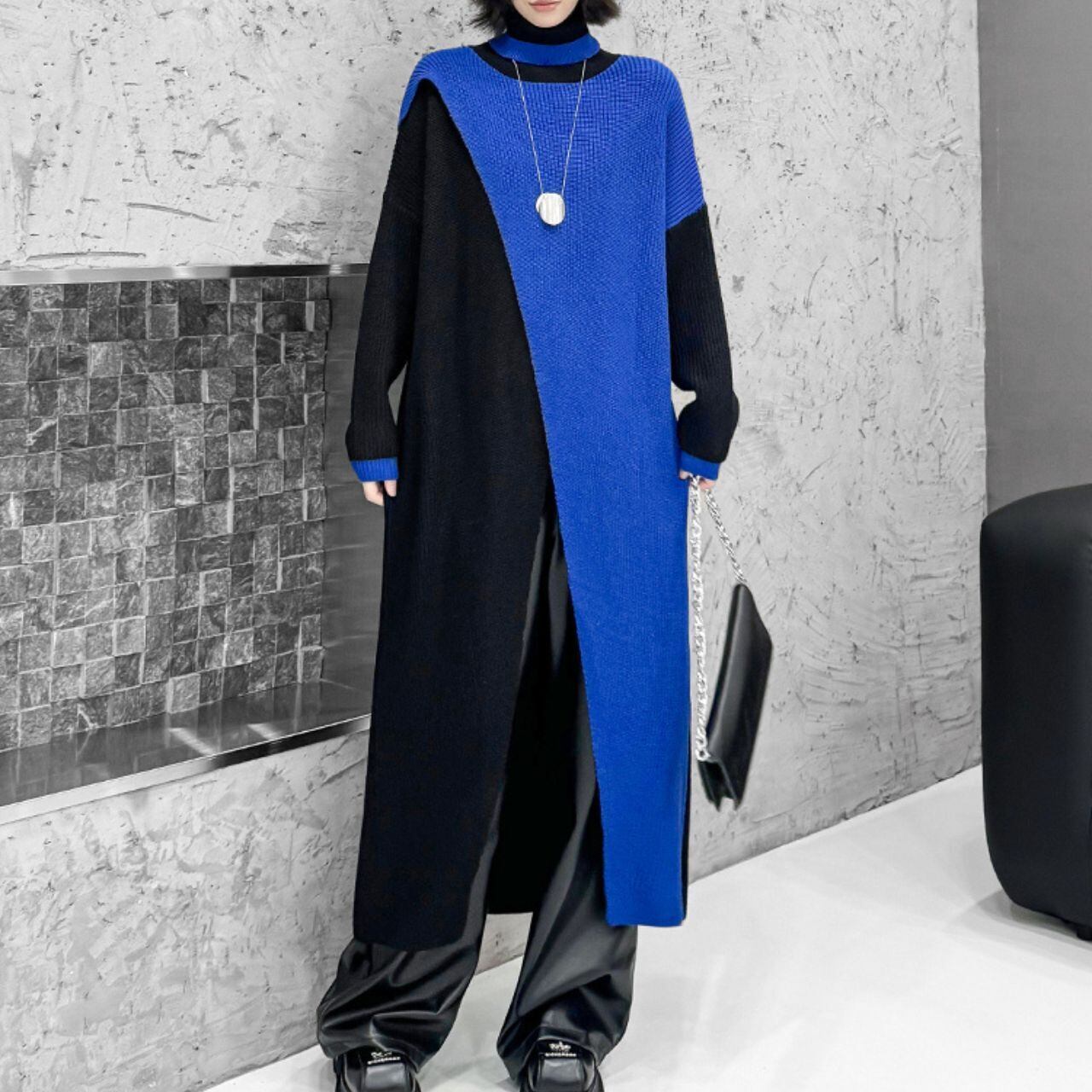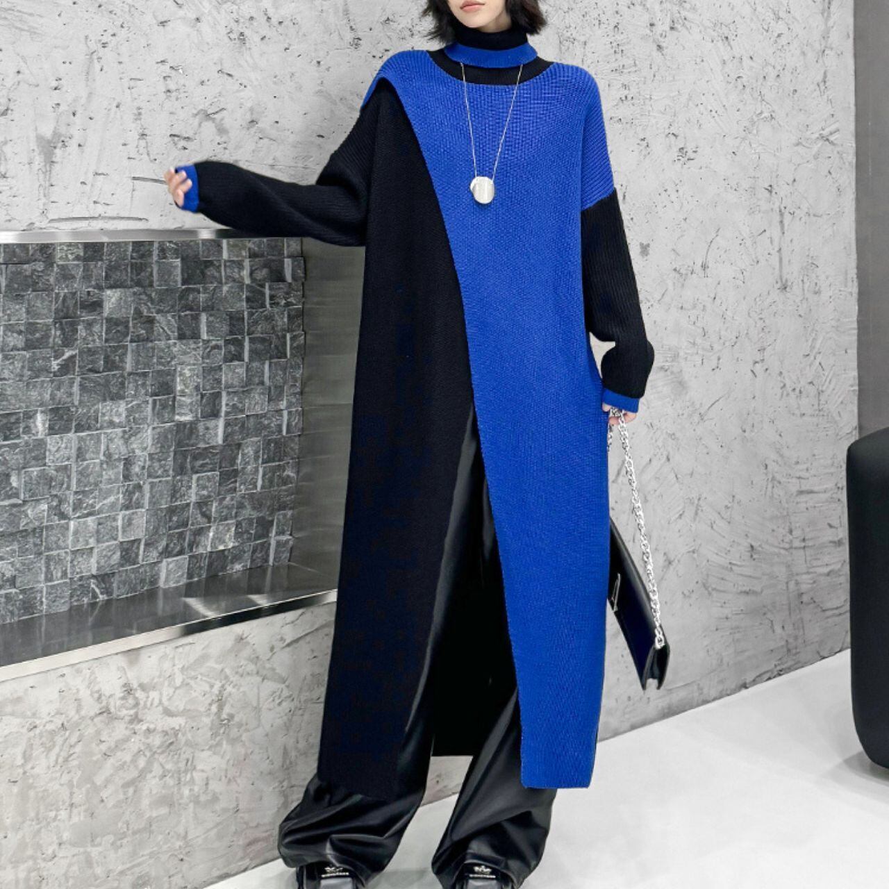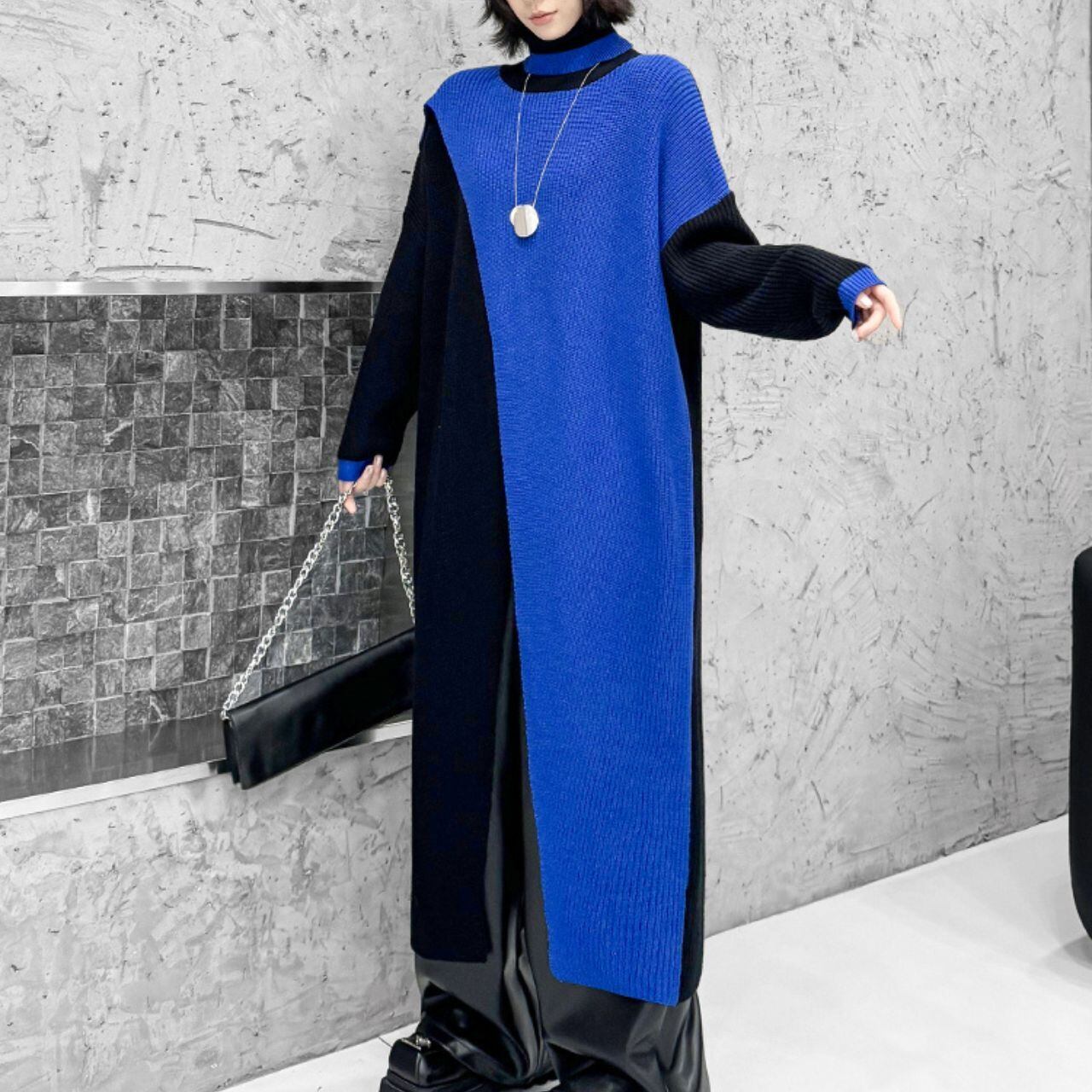 0159.バイカラースリットニットワンピース