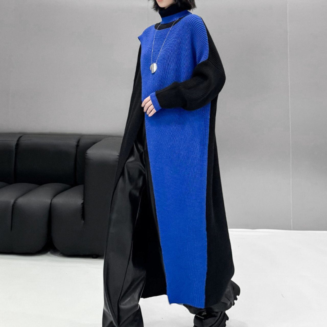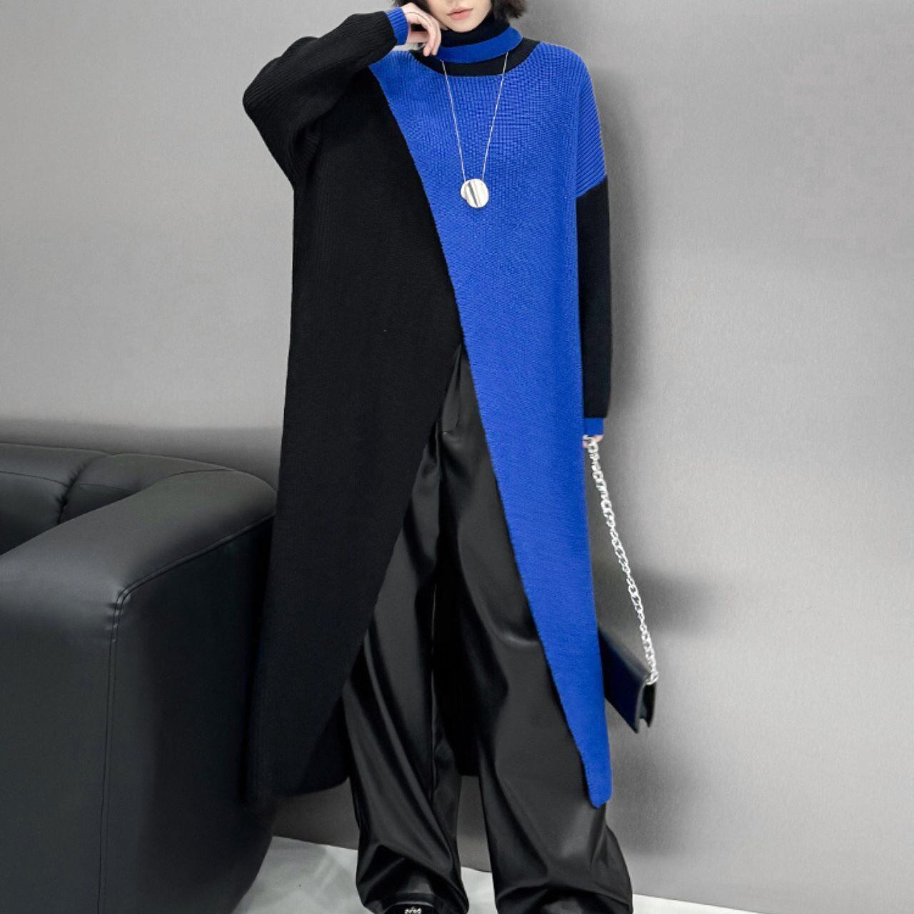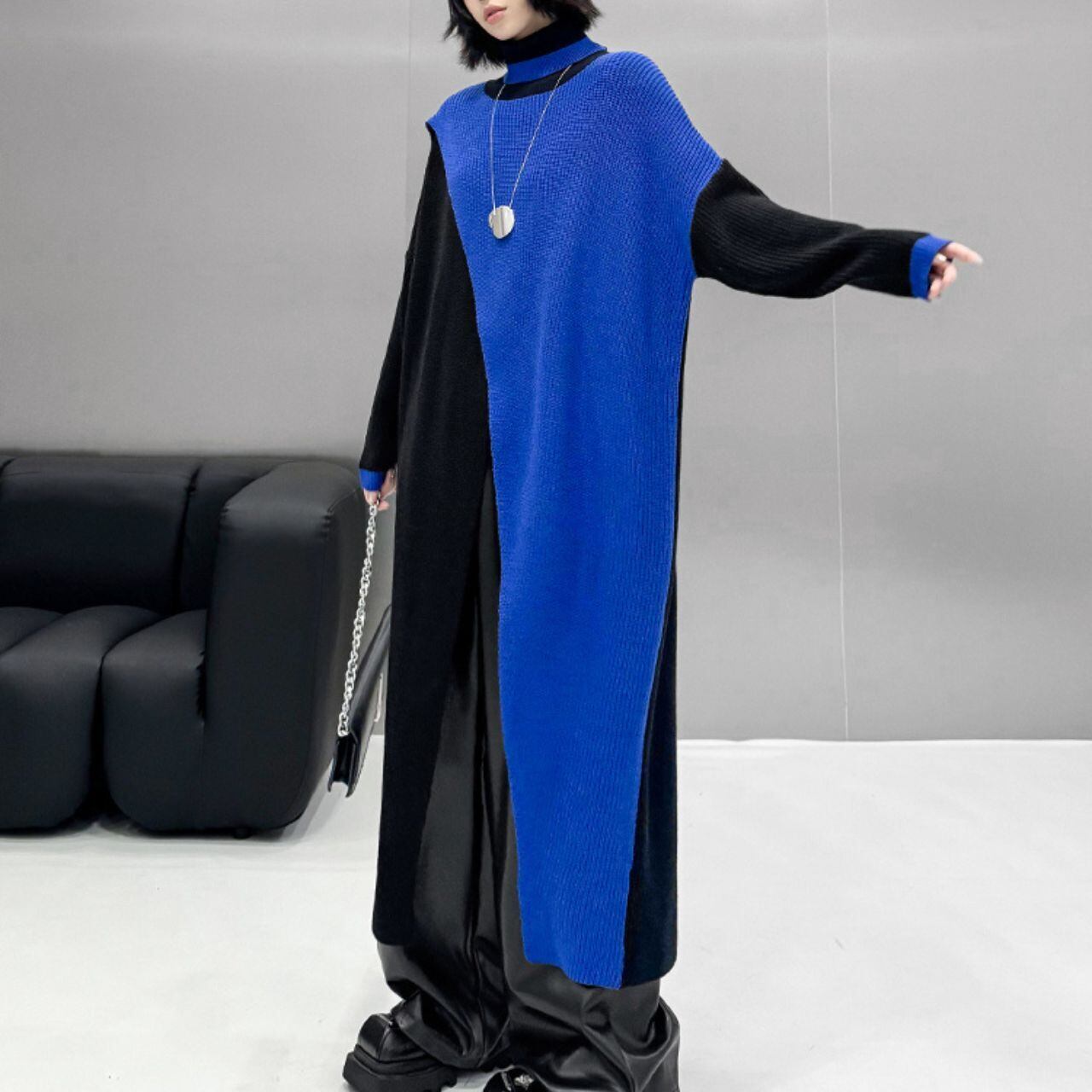 0159.バイカラースリットニットワンピース